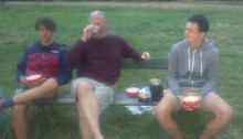 We ate what should have been our end of holiday treat-feast on a park bench in the drizzle, much to the bemusement of passing joggers.